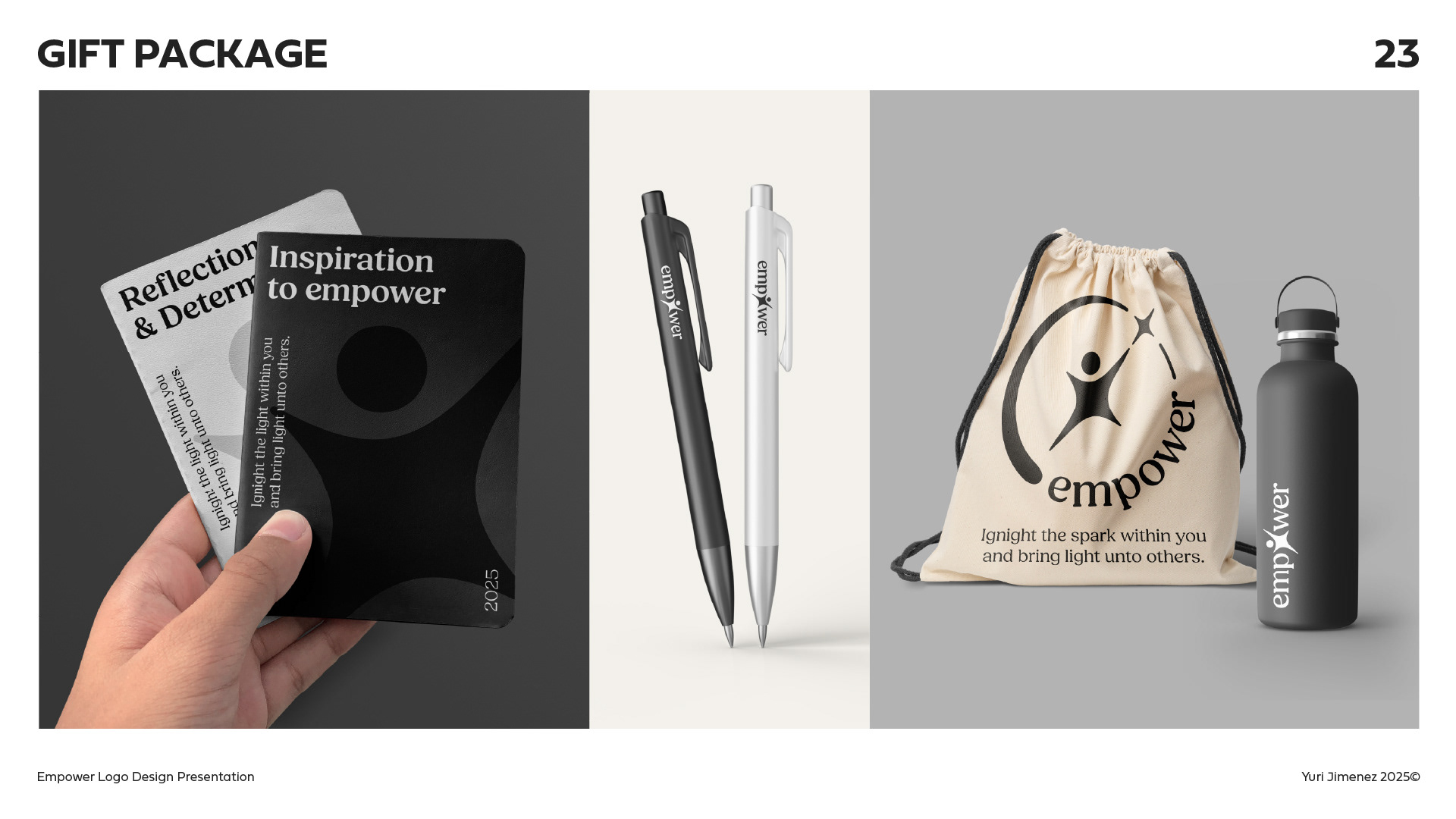 *As this project focuses on the logo itself, all mockups are presented with the logo in black and white. These may not be the final colors after I go through the visual identity phase with Empower.