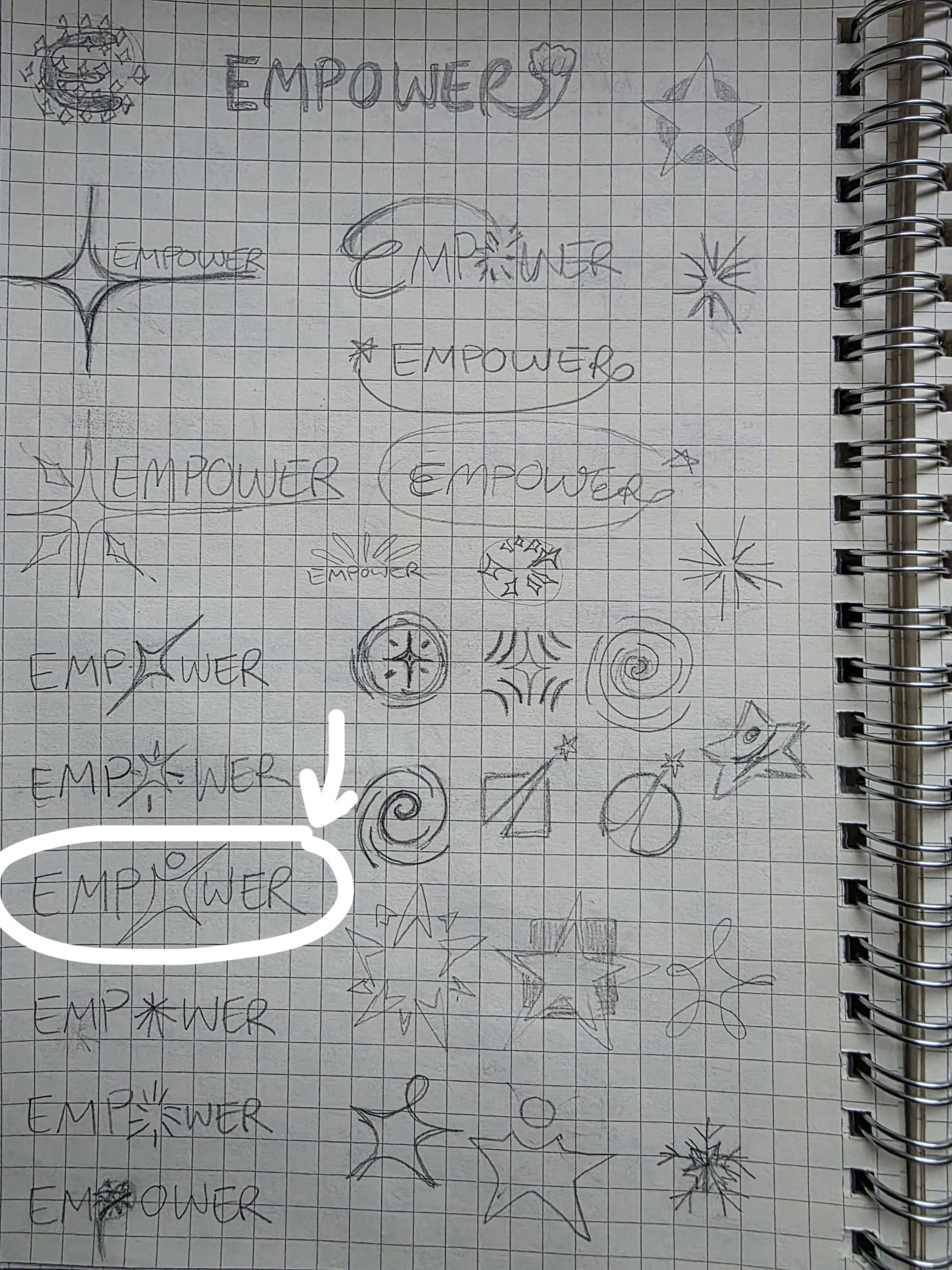 This made me think about stars, where many of the elements were and are created. Then I decided to put a circle on top of the star, making it look like a person, serving as a reminder that Empower is where people that "bring light to others".
