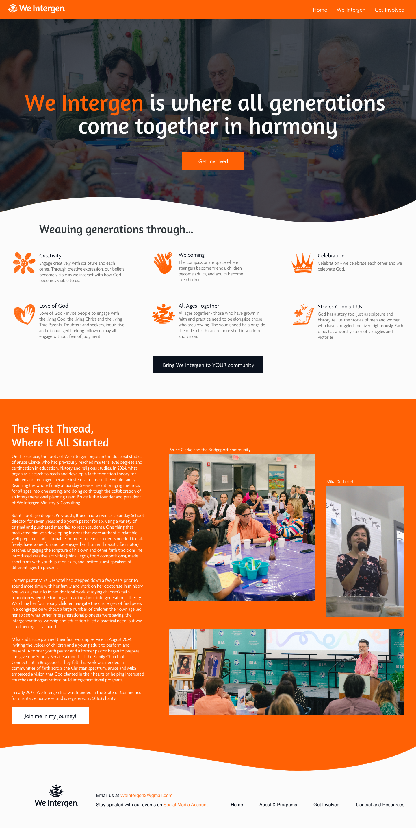 Bruce needed a website where people could learn more about We Intergen and support its mission of building harmony in God-centric families.